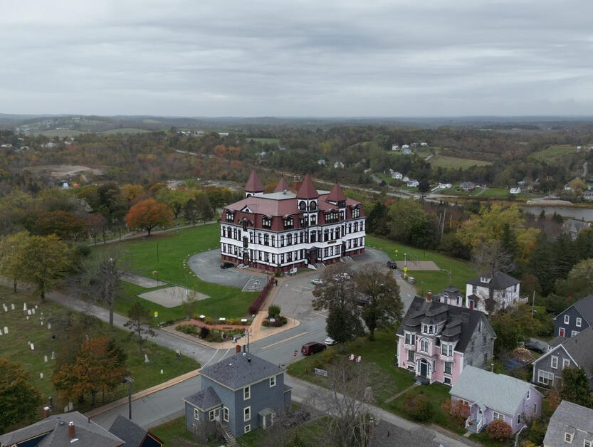 Formerly a school, now a library and music school. Shot on DJI Mini 3 Pro