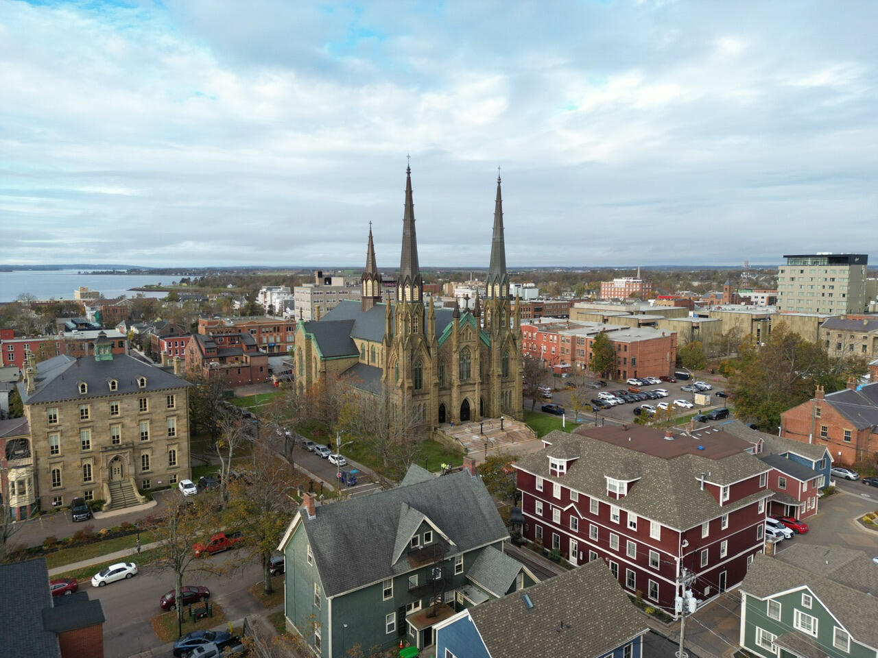 Large, central church in Charlottetown. Shot on DJI Mini 3 Pro